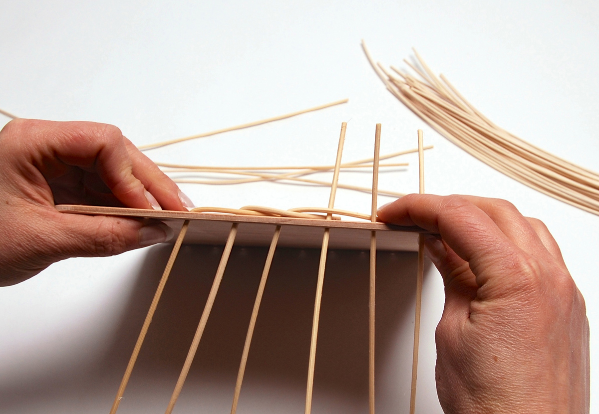 3. Postupně ohýbejte další pruty. Takto pokračujte po obvodu celé překližky.